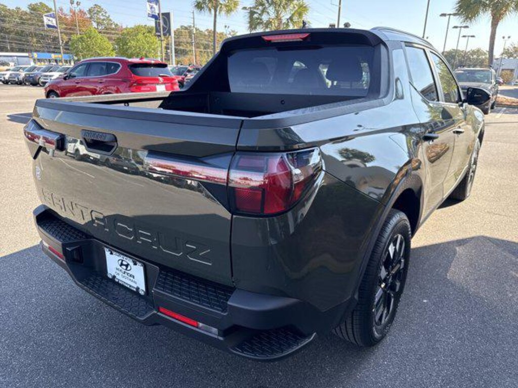 Tailgate/Rear Door Lock Included w/Power Door Locks, ROCKWOOD GREEN, OPTION GROUP 01 -inc: standard equipment, FIRST AID KIT, CARPETED FLOOR MATS, BLACK, H-TEX LEATHERETTE SEAT TRIM, BED MAT, BED FENCE, BED CARGO NET, ALL SEASON FITTED LINERS. This Hyundai Santa Cruz has a strong Regular Unleaded I-4 2.5 L/152 engine powering this Automatic transmission.